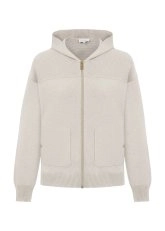 Rahatlığın ve doğal şıklığın modern yorumu: Merino yün karışımlı kapüşonlu naturel triko hırka. İtalyan ipliklerle üretilen bu özel tasarım, hafif dokusu ve yumuşak hissiyle günün her anında konfor sunar. Fermuar kapaması ve cepli formu sayesinde fonksiyonel bir kullanım sağlarken, naturel tonu ile zahmetsiz bir uyum yakalar. %50 FSC viskon, %30 poliamid ve %20 Merino yün karışımı, hırkaya hem yumuşaklık hem de uzun ömürlü bir form kazandırır.