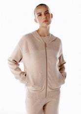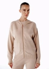 Ruhunuza yumuşak bir huzur getiren pudra rengi, bu kapüşonlu triko hırkayı yalnızca bir giyim parçası olmaktan çıkarıp bir his deneyimine dönüştürüyor. Merino yün karışımı yapısı, sıcaklık ve konforu dengelerken, fermuar kapamalı ve cepli tasarımı günlük kullanımda pratik bir şıklık sunuyor. Spor bir jean ile rahat bir stil yaratabileceğiniz gibi pudra merino yün karışımlı