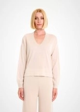 Minimal stili ile günün her anına uygun kombinlerle zahmetsizce eşleşen v yaka krem triko kazak, merino yünlü İtalyan iplik içeriği ile birinci sınıf kalitededir. Nefes alan ince yapısı sayesinde doğallığın konforunu ilk temastan itibaren hissettiren krem kazak, çağdaş bol kesimi ile de rahatına düşkün Knitss kadınlarının vazgeçilmezlerinden olmaya adaydır.