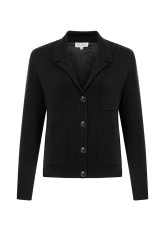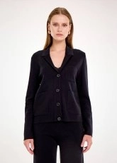 Kadın ofis takımlarına triko şıklığını getirecek siyah Merino yünlü ceketi keşfedin. Geri dönüştürülmüş Merino yün ve İtalyan ipliklerinden üretilen siyah triko ceket, hem konforlu hem de şık giyim deneyimi sunar. Stil sahibi ve kullanışlı yama cepleri ile fonksiyoneldir. İster etek ister pantolonlarla kolaylıkla eşleştirebileceğiniz kullanışlı ve uzun ömürlü bir kombin tamamlayıcısıdır.