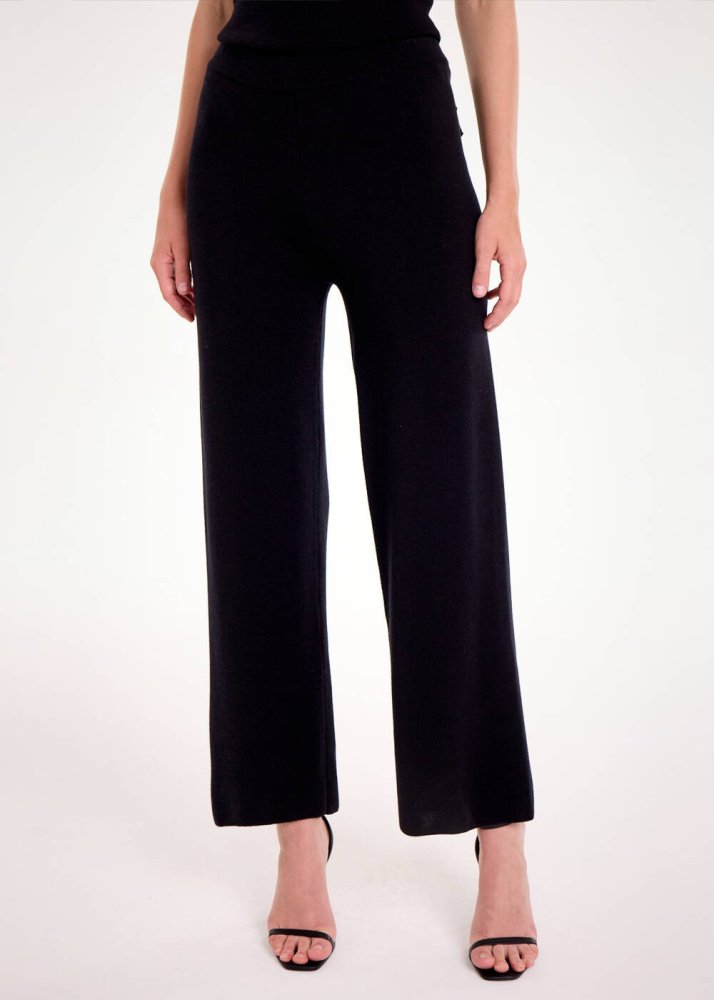 Triko konforunu ve şıklığını hem günlük hem ofis kombinlerine zahmetsizce taşıyan siyah pantolon, merino yünlü iplik karışımı ile üst düzey bir giyim deneyimi sunar. Elastik beli, kullanışlı arka cepleri, trikonun konforu ile rahatlığı ön planda tutan giyim stili sunan siyah pantolon, özgür ruhlu Knitss kadınlarının kurtarıcı parçalarındandır.