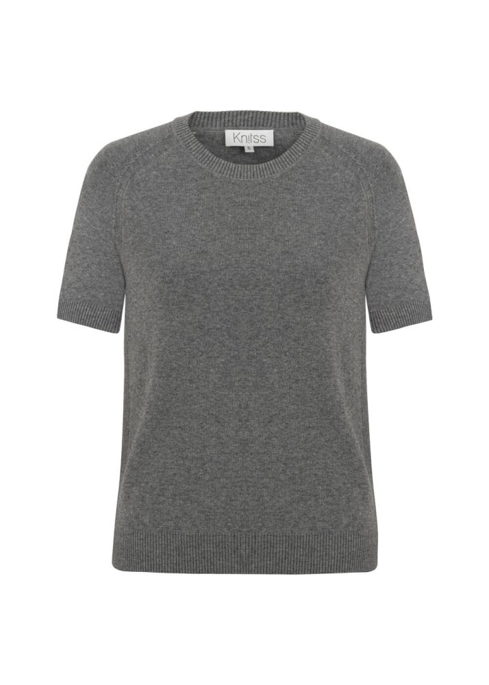 Merino Yün Karışımlı Triko Üst Gri