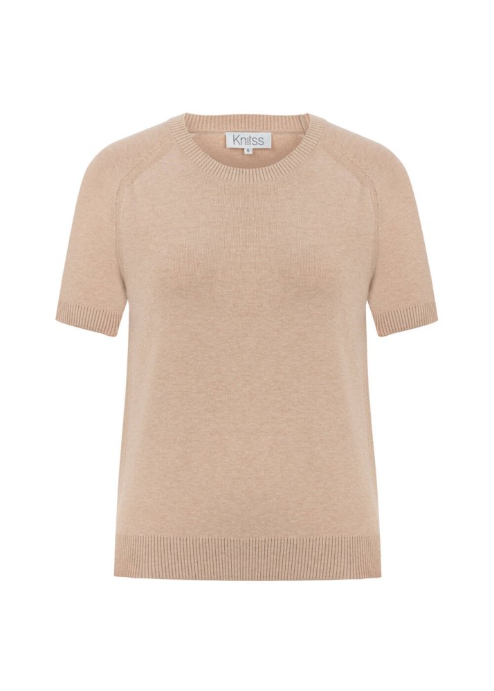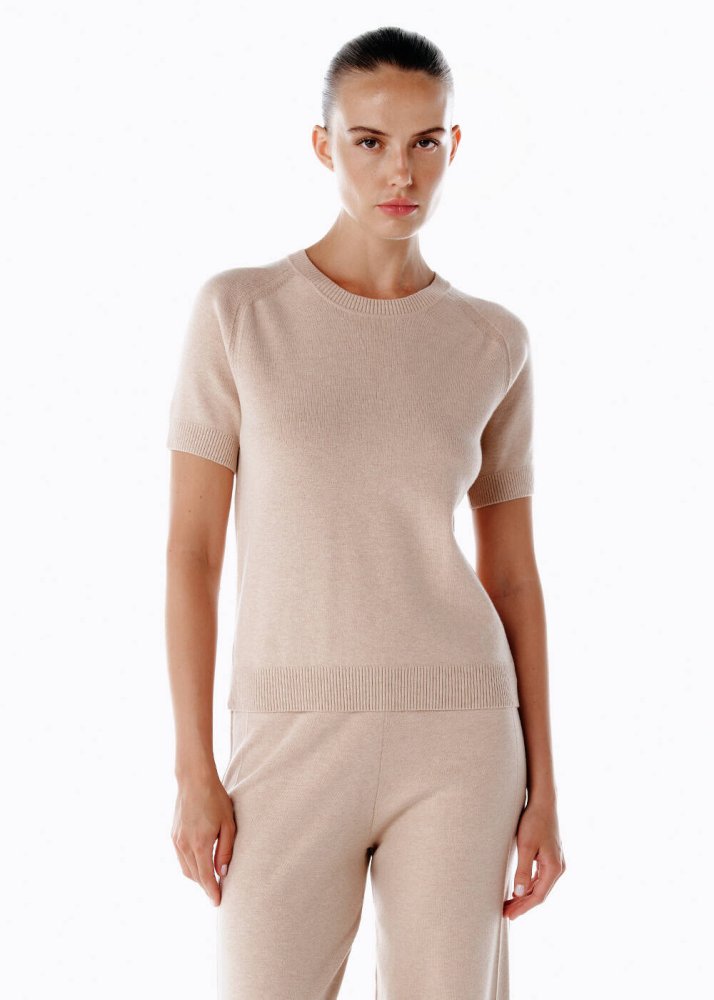 Renklerin en düşseli: Pudra merino yün karışımlı triko üst, yumuşak ve huzurlu tonuyla romantik bir sadelik sunuyor. Kısa kollu formu sayesinde mevsim geçişlerinde tek başına ya da ceketlerin altında katmanlı bir şıklıkla kombinlenebilir. İtalyan ipliğinin ince dokusu, hareket özgürlüğü ve gün boyu konfor sunar. Modern, zarif ve feminen stilin anahtar parçalarından biri olmaya aday.