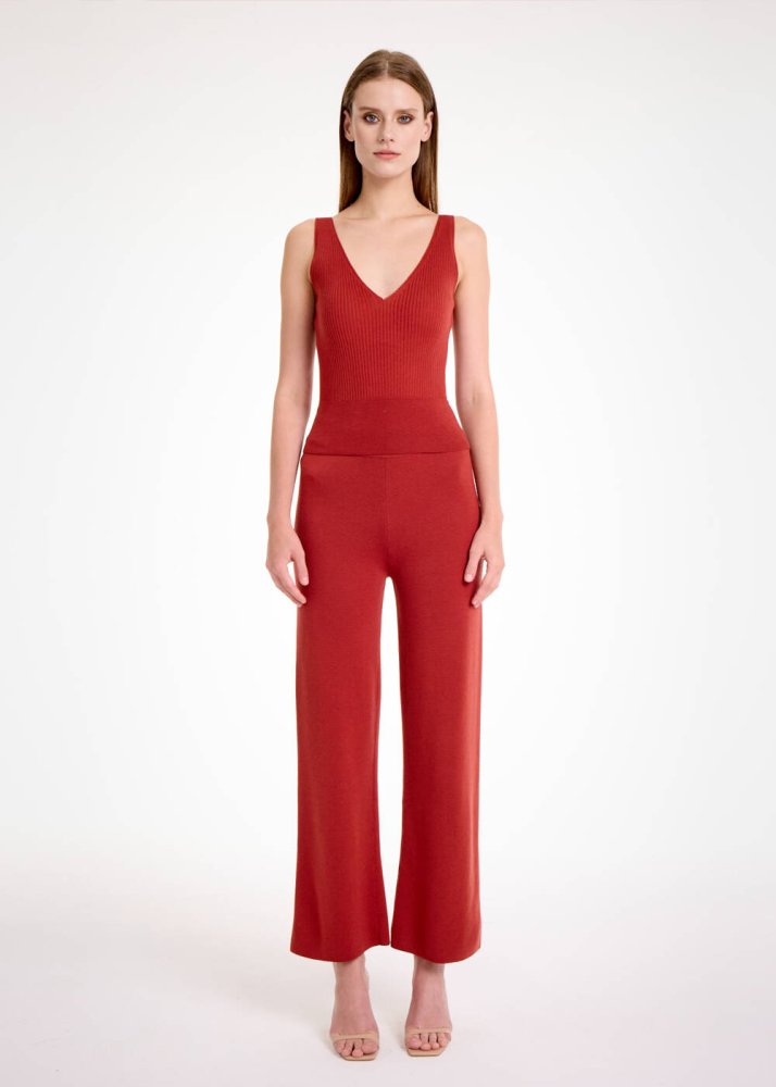 İddialı ve özgün stili ile fark yaratan Knitss kadınlarının çok seveceği v yaka kiremit rengi kolsuz triko, incecik merino yün karışımlı İtalyan ipliklerinden üretildi. Dar kesimli kolsuz triko, kusursuz görünüm sağlarken doğal elyaf içeriği sayesinde terletmez, triko konforunu ilk temastan itibaren yaşatır. Davet ve ofis kombinlerinden spor-günlük giyim tarzına kolaylıkla uyum sağlar.