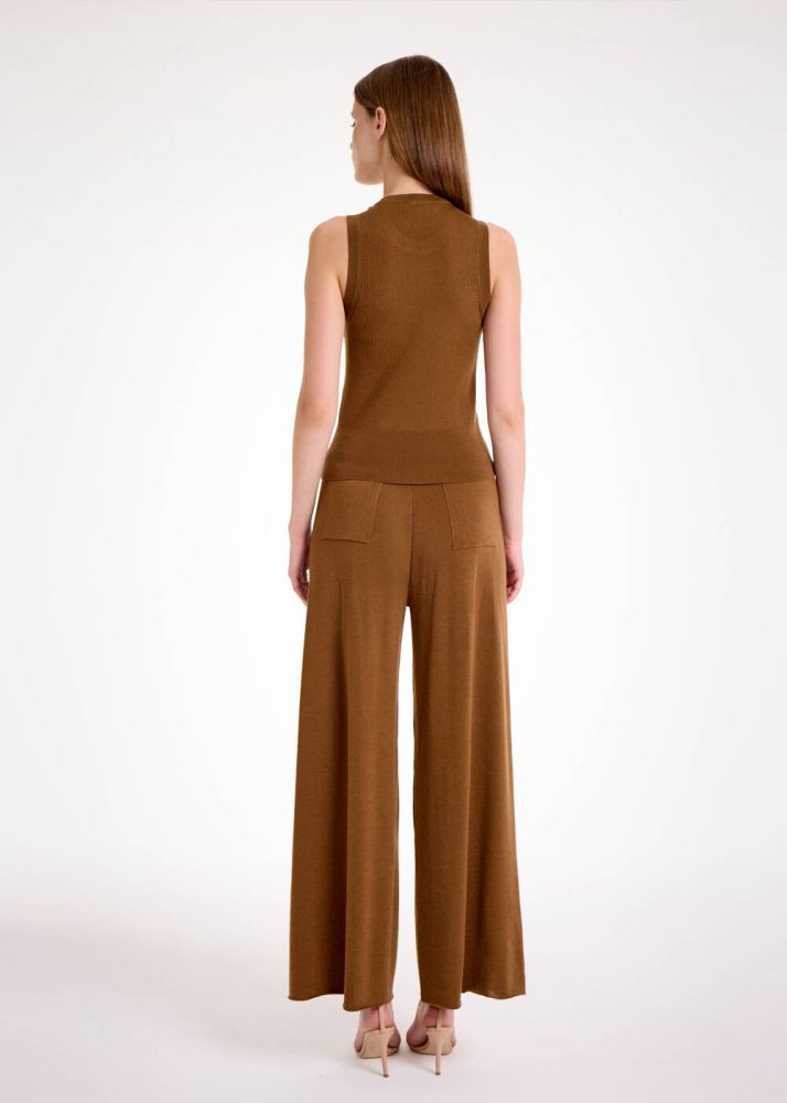 Merino Yün Kolsuz Tütün Rengi Triko Üst