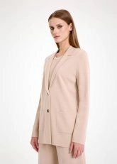 Minimal zarafeti ve çağdaş stili ile kışlık kombinlere Knitss zarafetini taşıyan triko blazer ceket, ince Merino yünü ve geri dönüştürülmüş sertifikalı İtalyan iplik karışımı ile sürdürülebilir modanın şık bir temsilcisidir. Rahat düz kesimi ile modern bir tarzda tasarlanan blazer ceket, fonksiyonel cepleri ile de çok kullanışlıdır.
