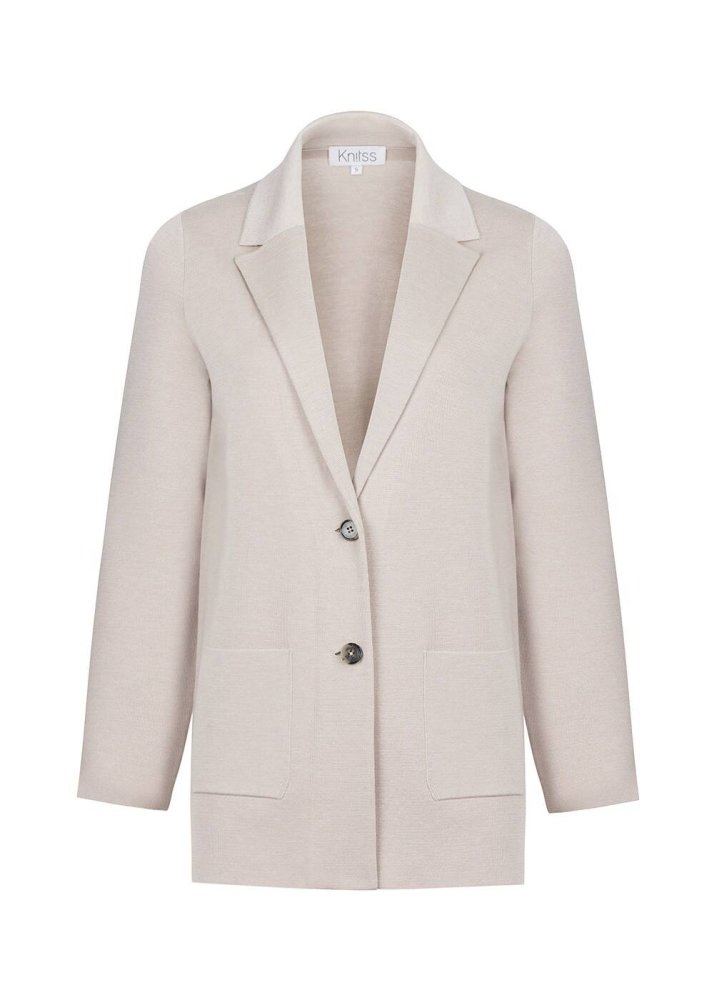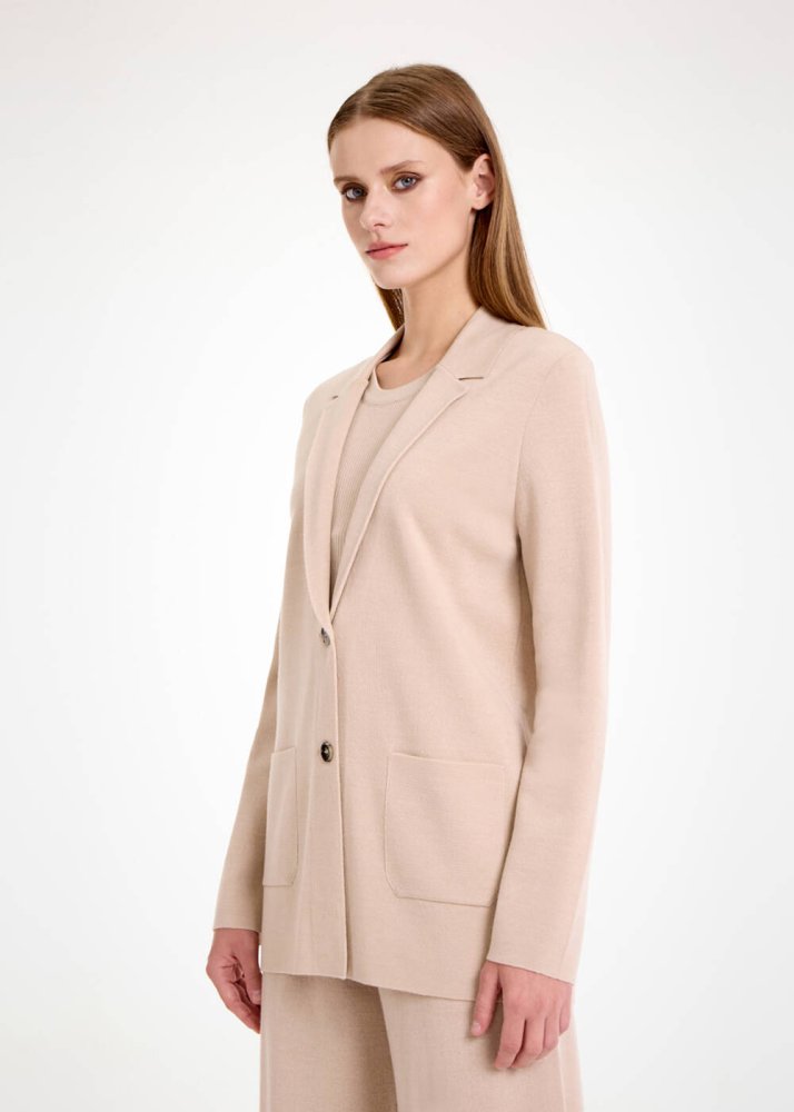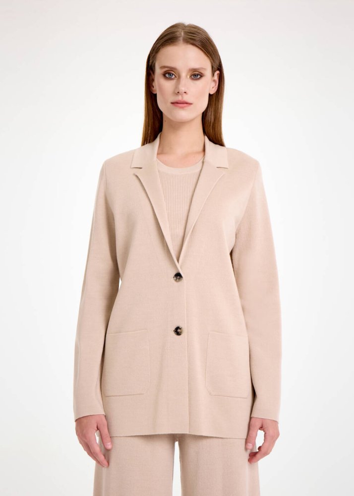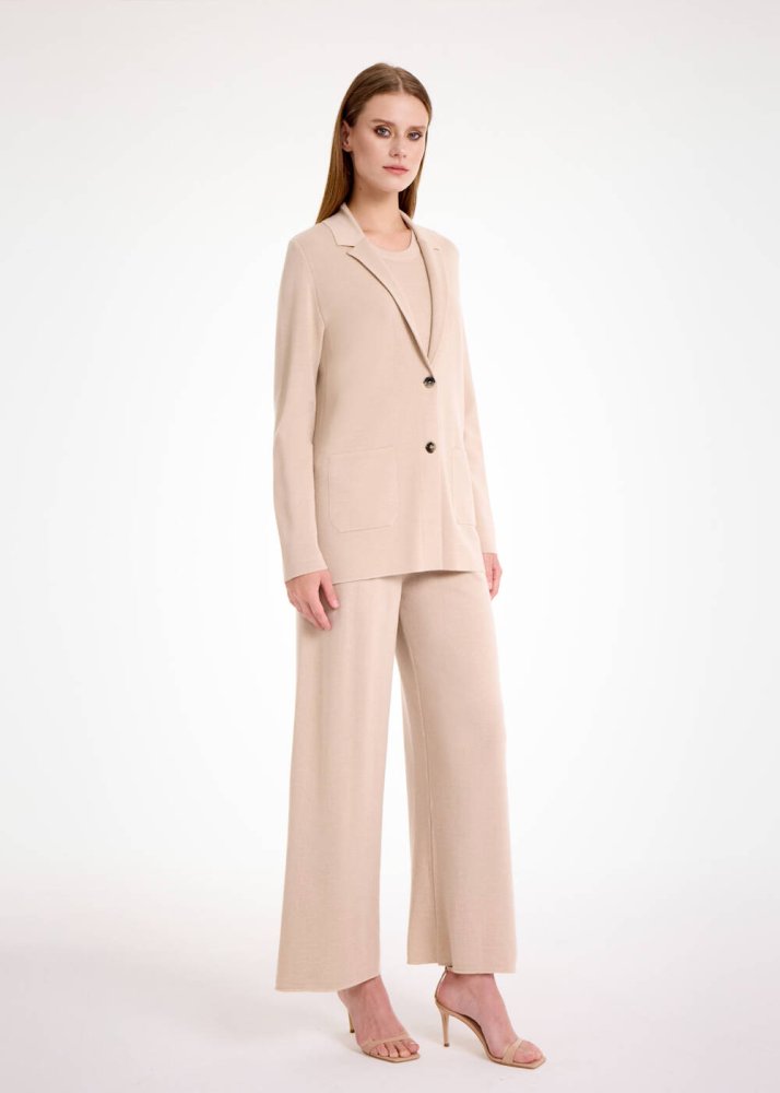 Merino Yün Naturel Triko Blazer Ceket