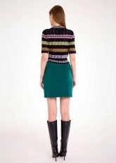 İnce Merino yün karışımlı yeşil triko etek, çarpıcı rengi ve önden fermuarlı modeli ile sofistike giyim zevkine hitap eder. Slim fit yeşil mini triko etek, hem ofis hem de günlük kombinlere zahmetsizce uyum sağlar. Hafifliği ve birinci sınıf kalitesi ile uzun yıllar kullanıma uygun Merino yün ve sertifikalı geri dönüştürülmüş İtalyan iplik içeriği ile çevre dostudur.