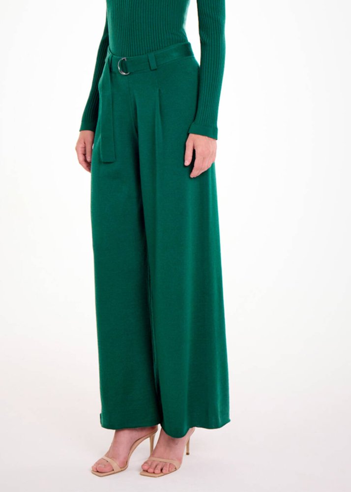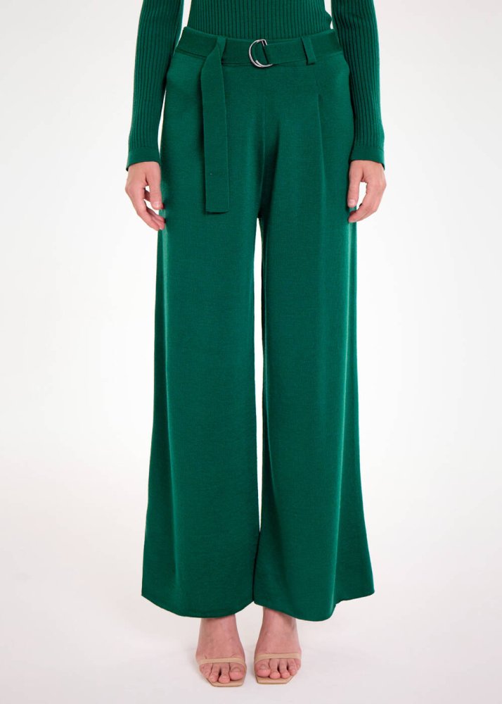 Triko şıklığını ve konforunu Knitss’e özgü sanatsal dokunuşla tamamlayan malakit yeşili triko pantolon, pileli modeli ve kendinden kemerli tasarımı ile çok şıktır. İnce Merino yünü ve geri dönüştürülmüş İtalyan iplik karışımlı içeriği ile çevre dostu doğal giyimin zarif bir temsilcisidir. Çarpıcı rengi ve pileli modeli ile kışlık kombinlerinize yeni bir soluk kazandırır.