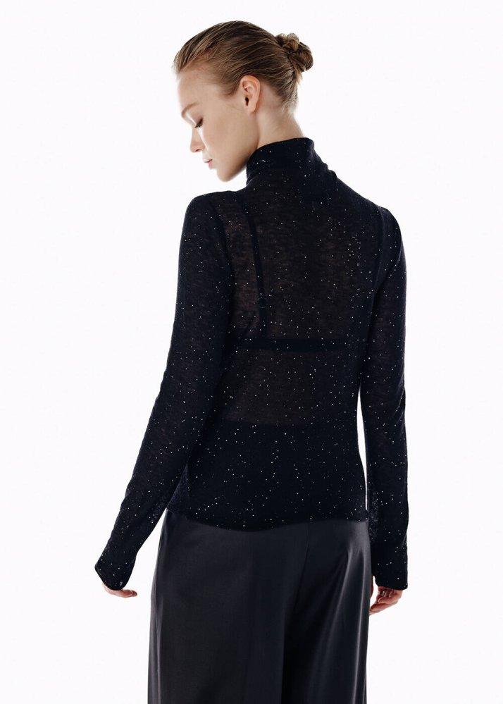 MICRO SEQUIN EXTRAFINE WOOL SWEATER BLACK