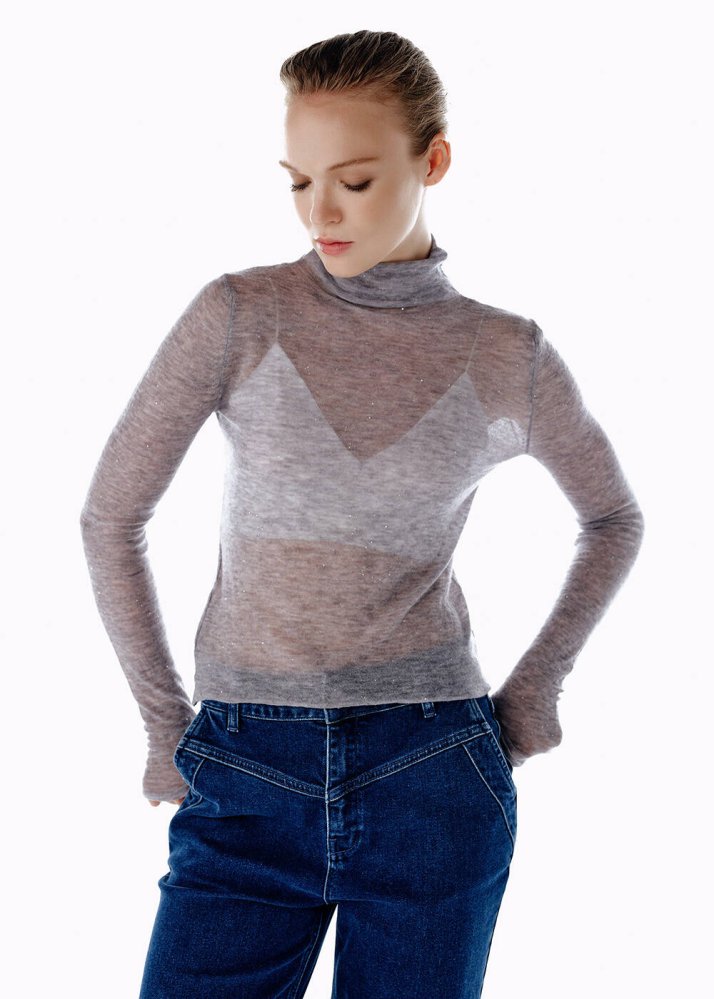 MICRO SEQUIN EXTRAFINE WOOL SWEATER GREY