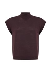 Pile Detaylı Triko Pantolon Koyu Kahverengi
