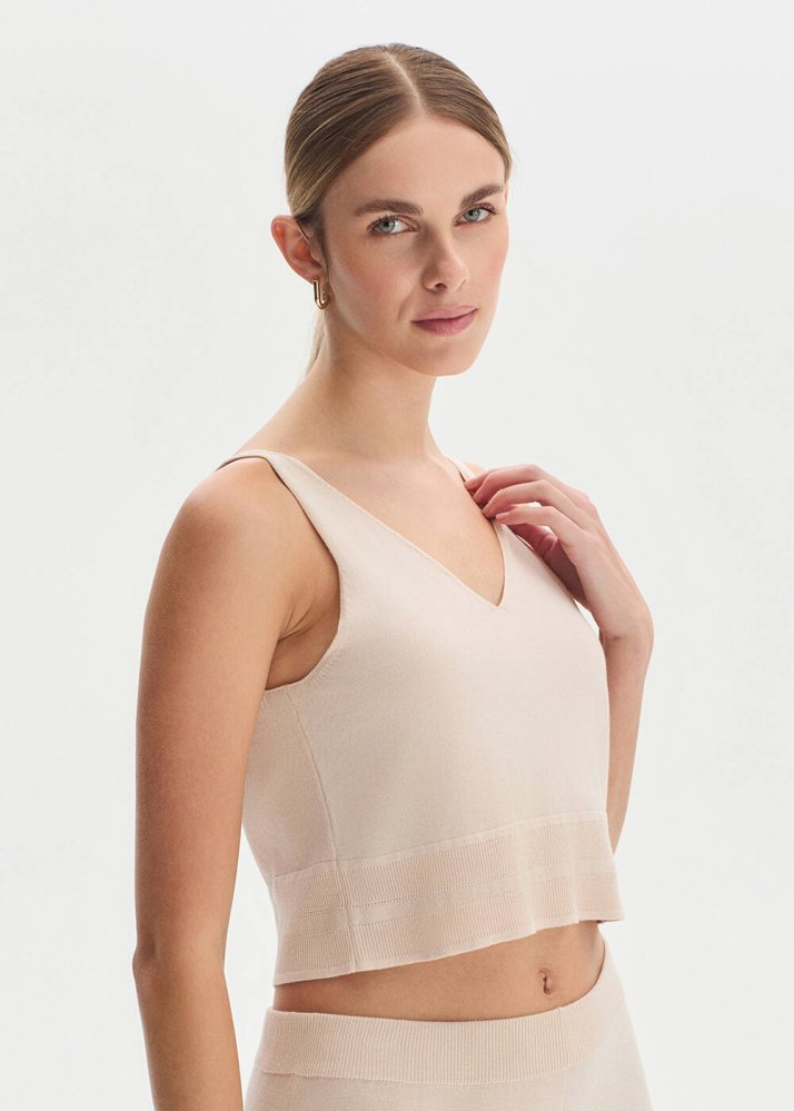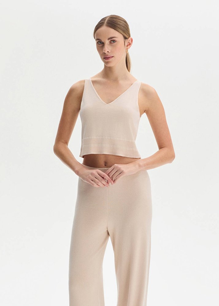 NATURAL COTTON SILK BLEND KNIT TOP