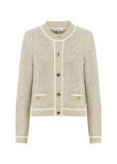 Naturel muline triko ceket, dokusuyla doğadan ilham alan bir zarafet sunuyor. Muline ipliğin hafif renk oyunları, tasarıma derinlik ve elegant bir hareket katıyor. Dokusu neredeyse bir heykel gibi bedeni sararken, hafifliği konforu zirveye taşıyor. Minimal lüks anlayışını modern bir bakış açısıyla yansıtan tasarım, çeşitli tarzda kombinlerle farklı karakterler kazanabilir.