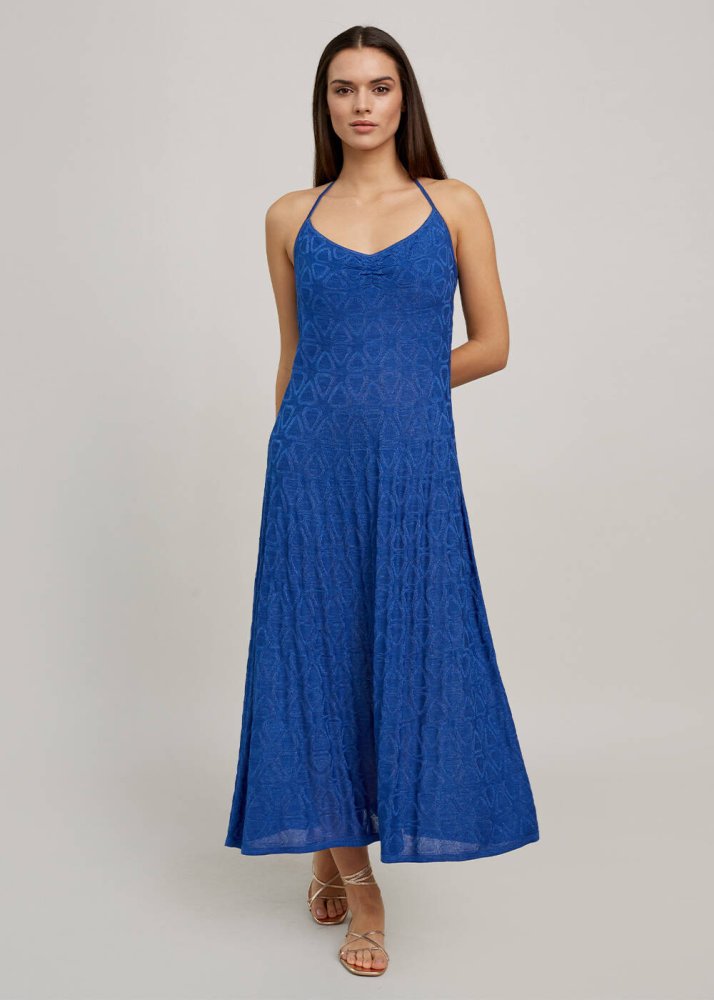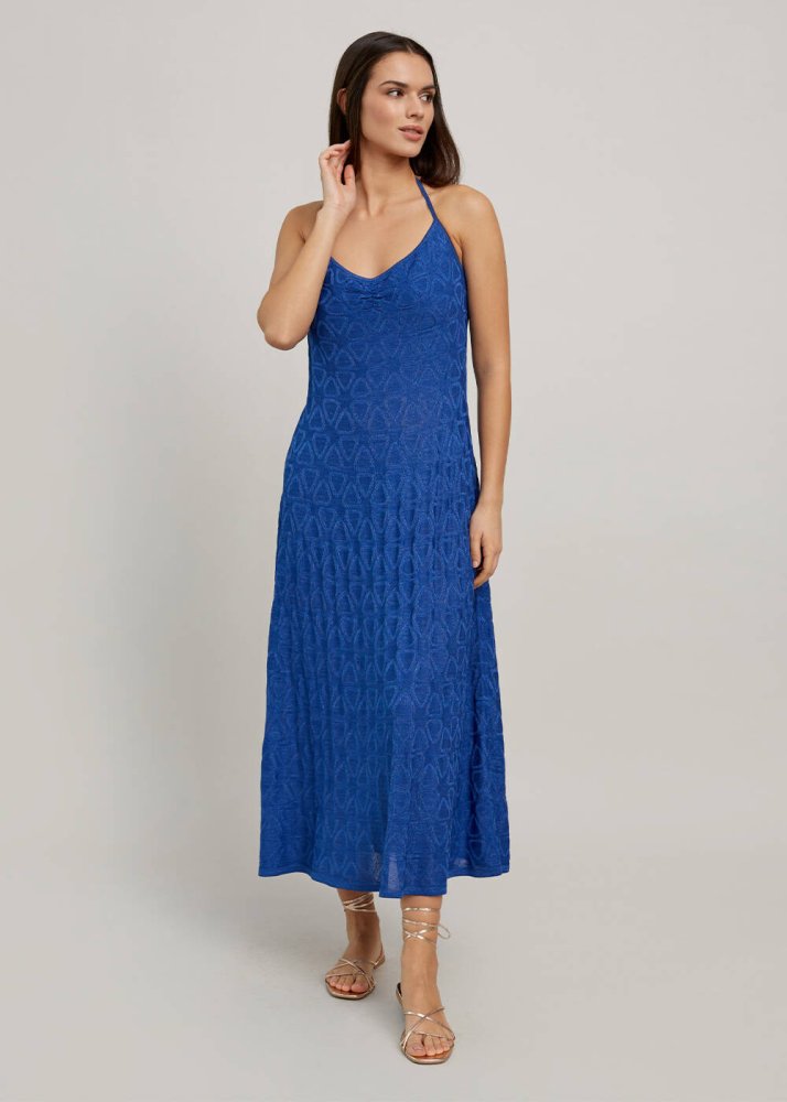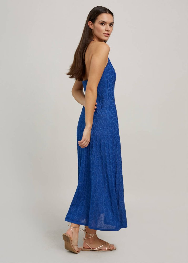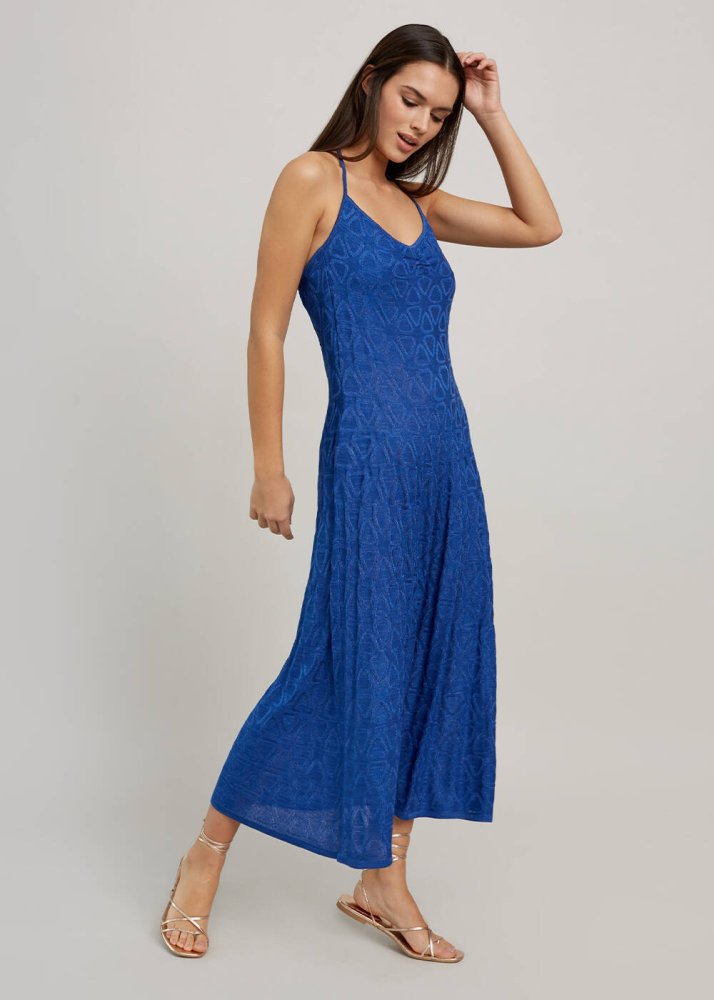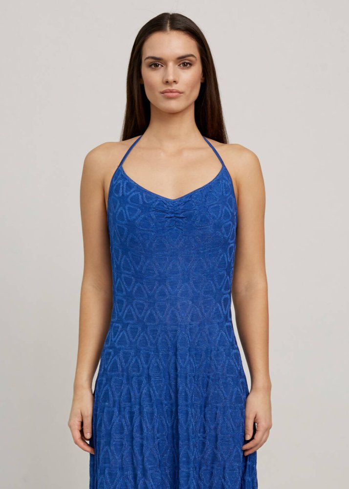 Ocean Blue Geometric-Patterned Knit Dress