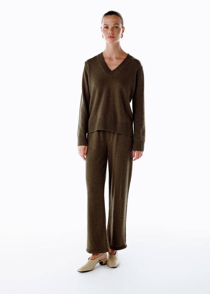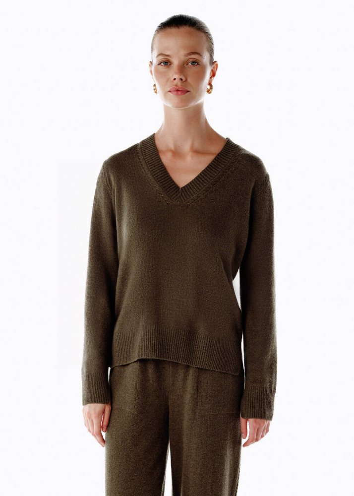 OLIVESTONE V NECK CASHMERE SWEATER