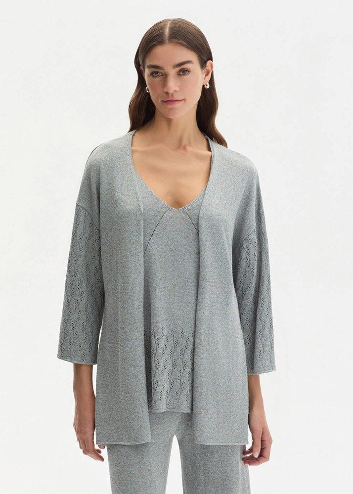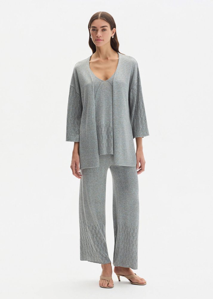 Gri triko hırka, önden bağlamalı tasarımı sayesinde belinizi vurgulayan feminen bir siluet oluşturabilir ya da bağlamadan kullanarak daha rahat ve salaş bir görünüm tercih edebilirsiniz. Aynı koleksiyonda yer alan gri triko pantolon ve gri triko üst ile kombinlendiğinde modern ve şık bir takım görünümü elde edebilirsiniz. Gündelik kombinlerden özel davetlere kadar farklı ortamlarda rahatlıkla kullanılabilen bu özel parça, sürdürülebilir moda anlayışıyla tasarlanmış olup hem stilinizi hem de çevreye duyarlılığınızı yansıtır.