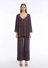 mor triko üst ile tamamlandığında göz alıcı ve uyumlu bir stil oluşturur. Gündüzden geceye uzanan kombinlerde zarif bir tamamlayıcı olarak öne çıkar.