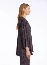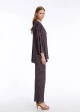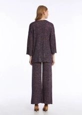 Işıltılı iplik dokusu ve ajur örgü detaylarıyla öne çıkan mor triko hırka, zarif ve dikkat çekici bir stil arayanlar için ideal bir parça. Hafif dökümlü yapısı ve önden bağlamalı tasarımı sayesinde hem konforlu hem de şık bir siluet sunar. Aynı koleksiyonda yer alan