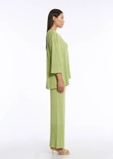 yeşil triko üst ile kombinleyerek, baştan aşağı uyumlu ve şık bir görünüm elde edebilirsiniz. Günlük şıklığa sofistike bir dokunuş katmak için ideal! Ayrıca, sürdürülebilir moda anlayışını benimseyen triko hırka, çevre dostu üretim süreciyle de doğaya duyarlı tercihinizi ortaya koyar.