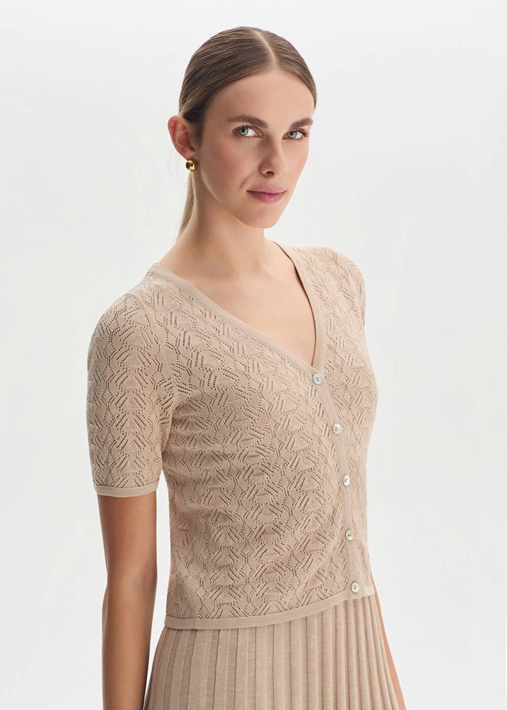 ORGANIC COTTON BLEND SAND KNIT CARDIGAN