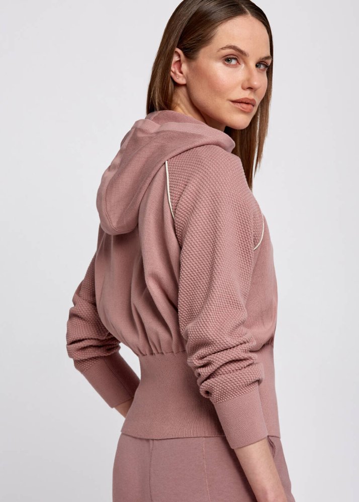 Organic Cotton Contrast Piping Detail Lilac Knit Jacket