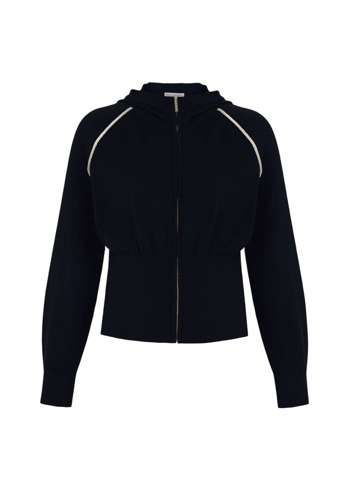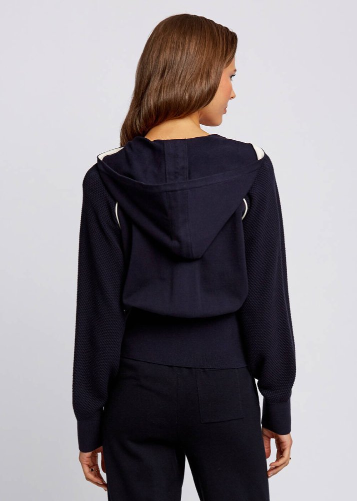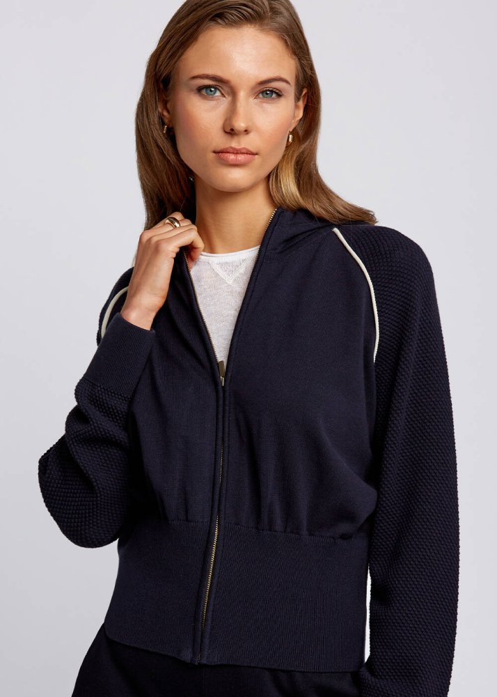 Organic Cotton Contrast Piping Detail Navy Knit Jacket