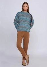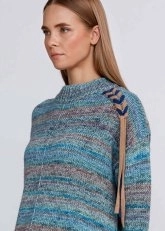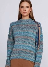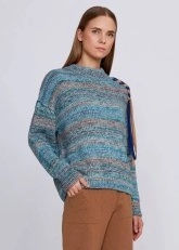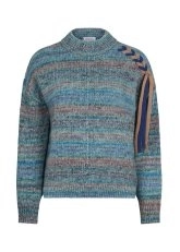 Organic Cotton Wool Blend Fringe Neck Blue Knit Cardigan