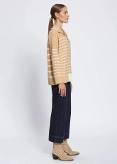 Organic Cotton Wool Blend Stripes Camel Knit Top