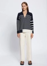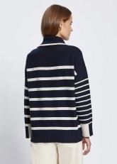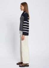 Organic Cotton Wool Blend Stripes Navy Knit Top
