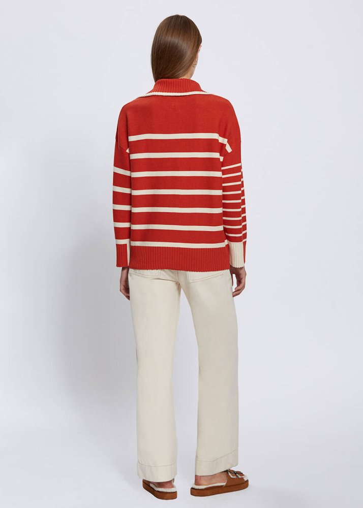 Organic Cotton Wool Blend Stripes Orange Knit Top