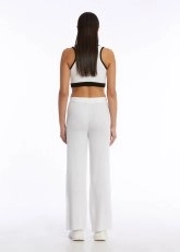 Saf organik pamuk beyaz triko pantolon, minimal şıklığı ve konforlu kalıbı ile yazlık kadın kombinleri için vazgeçilmezdir. %100 organik pamuktan üretilen beyaz triko pantolon, nefes alan doğal elyaf içeriği sayesinde terlemeyi minimize eder, insan teniyle uyumludur. Çağdaş Knitss kadını için günün her anına uygun kullanışlı bir kombin tamamlayıcısıdır.