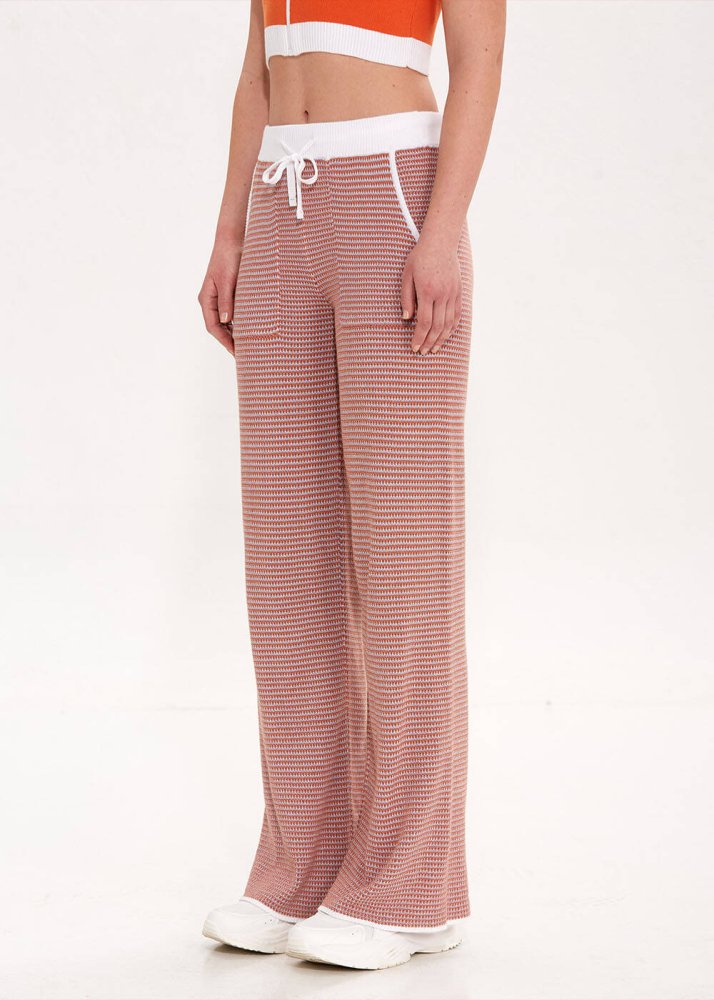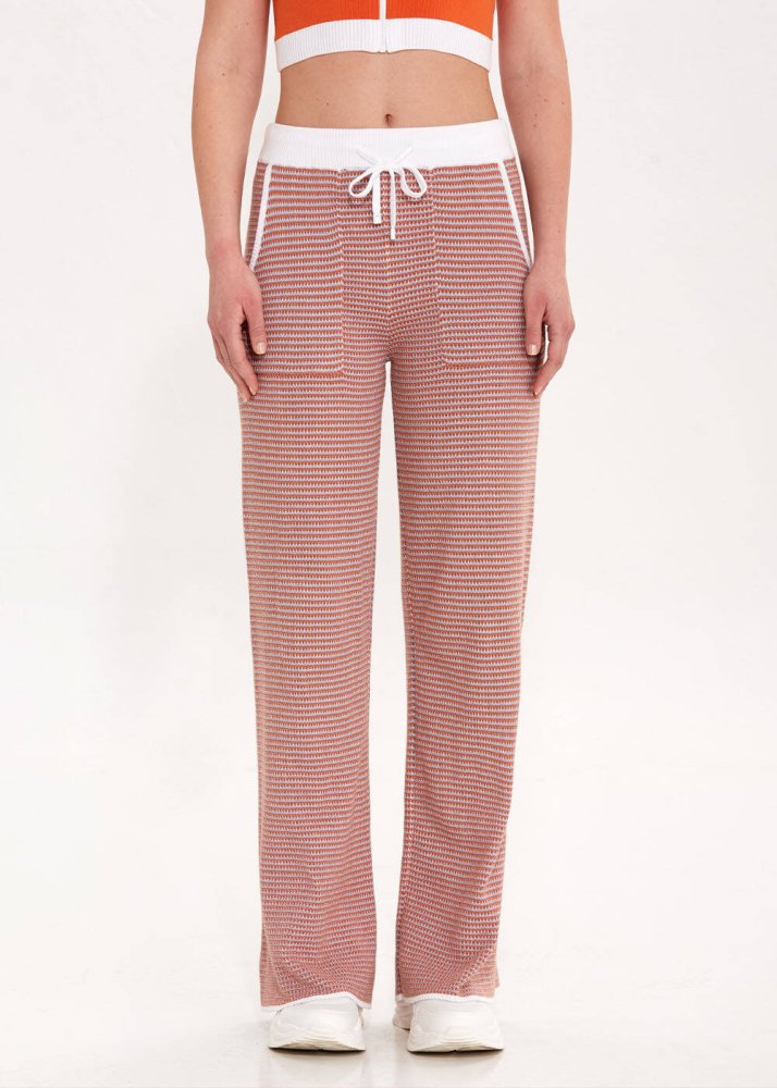 Saf organik pamuklu bordo-beyaz triko pantolon, spor-şık kombinlerle kolayca uyum sağlayan kullanışlı bir parçadır. Sürdürülebilir İtalyan organik pamuğundan doğaya saygılı bir modacılık anlayışı ile üretilen triko pantolon, rahat kalıbı ve kullanışlı cepleri ile konforu ön planda tutar. Yazın triko giymenin keyfini ilk temastan itibaren yaşatır.