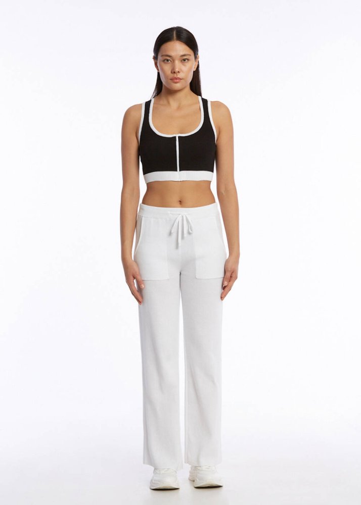 Çağdaş spor kombinlere Knitss ayrıcalığı taşıyan siyah-beyaz fermuarlı crop üst, organik pamuk ipliği ve özgür stili ile dikkat çeker. Nefes alan organik pamuğun saf konforunu gün boyu yaşatan kolsuz siyah crop üst, trikoya özgü dokusu ve nervür detayıyla fark yaratır. Triko şıklığını her mevsim, her ortamda üzerinizde taşımanın en doğal halini bu çağdaş crop üstle yaşayın.
