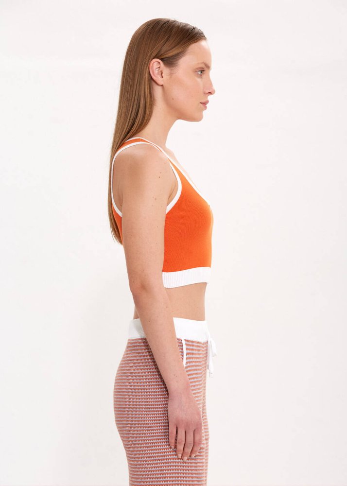Organik Pamuk Crop Turuncu Triko Üst