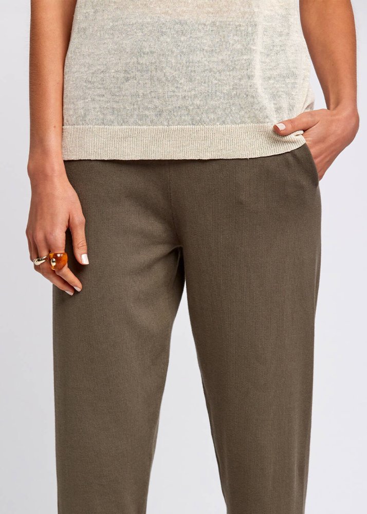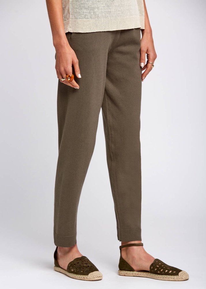 Sezonun trend rengi haki ile sportif kombinlerinize Knitss ayrıcalığı katın. GOTS sertifikalı pamuk ipliklerden üretilen kadın triko pantolon modeli, fonksiyonel cep ve belden lastik detayı ile gün boyu konfor sunar. Haki triko pantolonu, isterseniz takımı olan Cali Sweater ve Cali Jacket ile isterseniz de koleksiyonda yer alan başka bir parça ile mükemmel bir uyum içerisindedir.