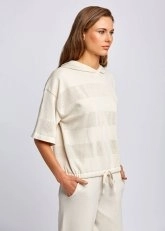 Sportif stilinize uygun kapüşonlu bej triko üst, %100 organik pamuktan üretilmiştir. Triko üst modeli, beli bağcıklı ve yumuşak, ince dokusu ile serin akşamlarda üzerinize alabileceğiniz şık bir kombin tamamlayıcısıdır. Bej triko üst, hafta sonu kombinleriniz için idealdir.