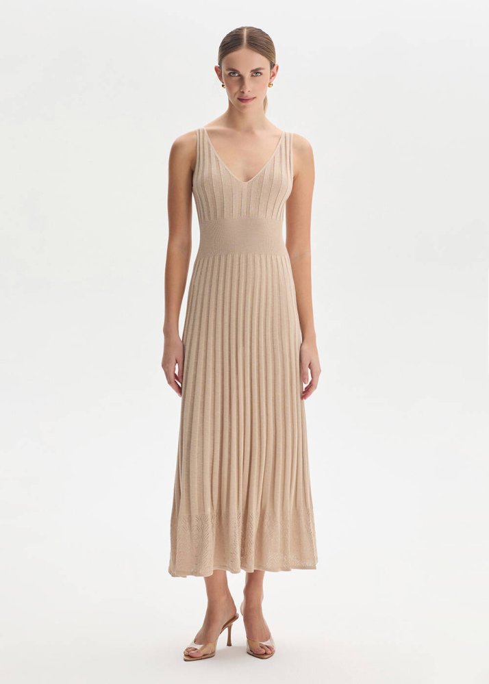Organik Pamuk Karışımlı Bej Triko Elbise