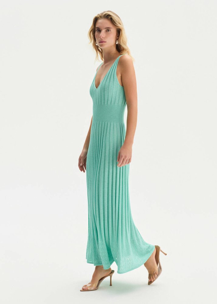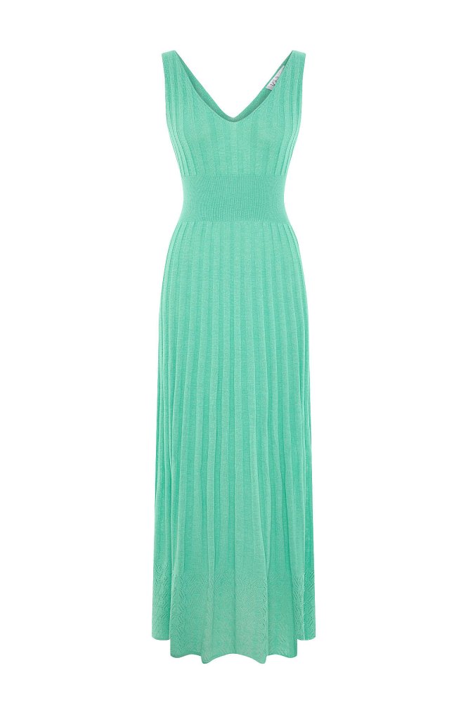 Organik Pamuk Karışımlı Su Yeşili Triko Elbise
