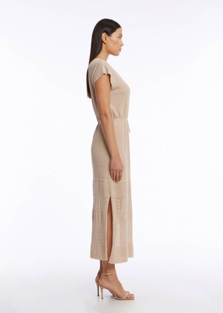 Organik Pamuk Keten Karışımlı Triko Elbise Bej