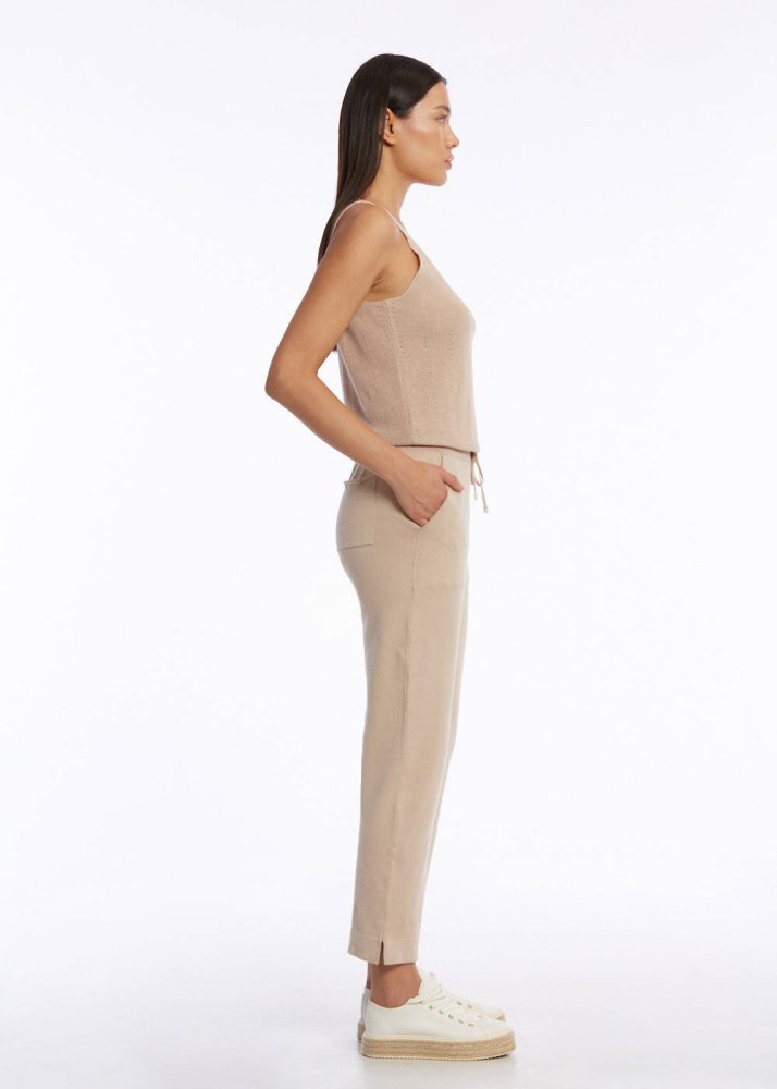 Organik Pamuk Keten Karışımlı Triko Pantolon Bej