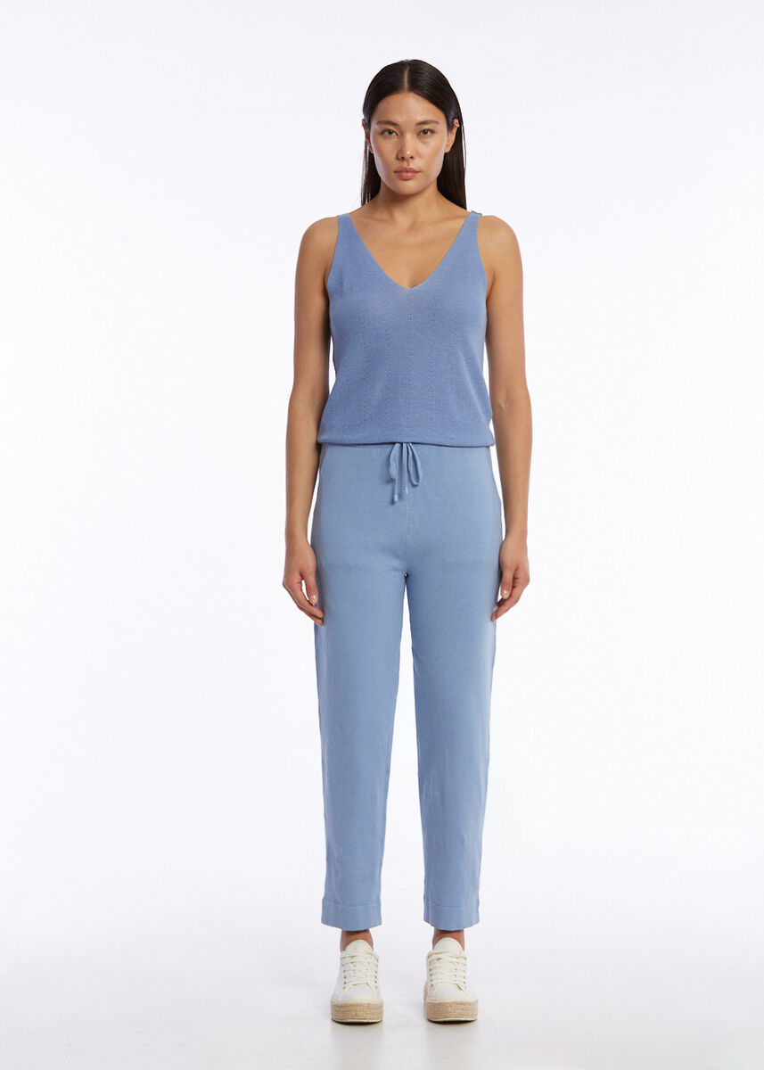 Organik Pamuk Keten Karışımlı Triko Pantolon Mavi