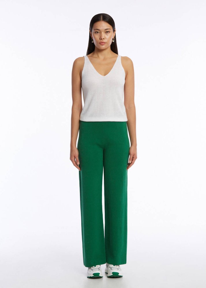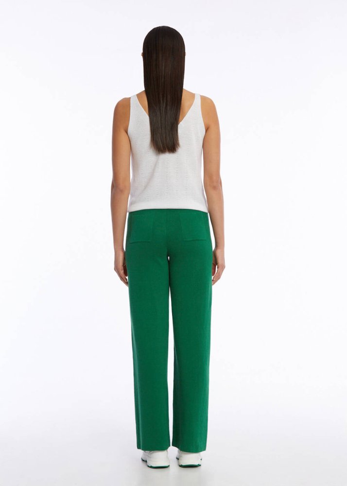 Organik Pamuk Keten Karışımlı Yeşil Triko Pantolon