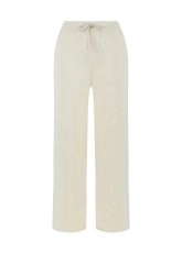 Evde giyimi konforlu ve şık hale getirmeyi mümkün kılan krem rengi triko pantolon, organik pamuklu iplik içeriği ile birinci sınıf kalitededir. Nefes alan organik pamuğun konforunu beli bağcıklı ve cepli tasarımıyla tamamlayan krem triko pantolon, rahat ve şık ev giyimi için kullanışlı bir parçadır. Mükemmel kalıbı ile fit bir görünüm sunar.