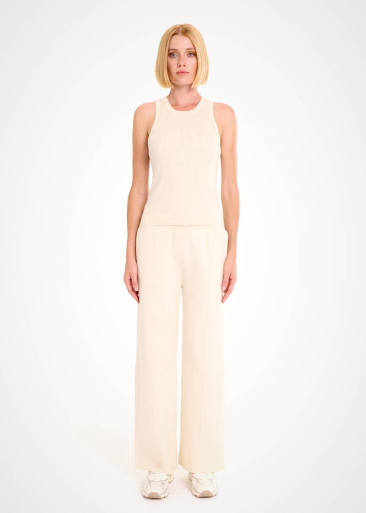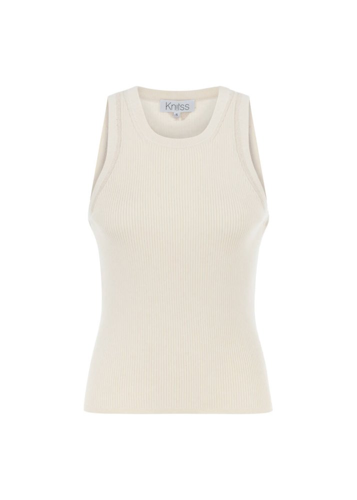 Organik pamuklu krem kolsuz üst, triko konforunu ve şıklığını ev giyim kombinlerine taşır. Geri dönüştürülmüş organik pamuklu iplik içeriği ile sürdürülebilir giyimi gardırobunuza taşıyan Knitss krem üst, kolsuz sportif stili ve kolay kombinlenebilen zamansız rengi ile ev kıyafetlerinizin arasında vazgeçilmezlerinizden olmaya adaydır.