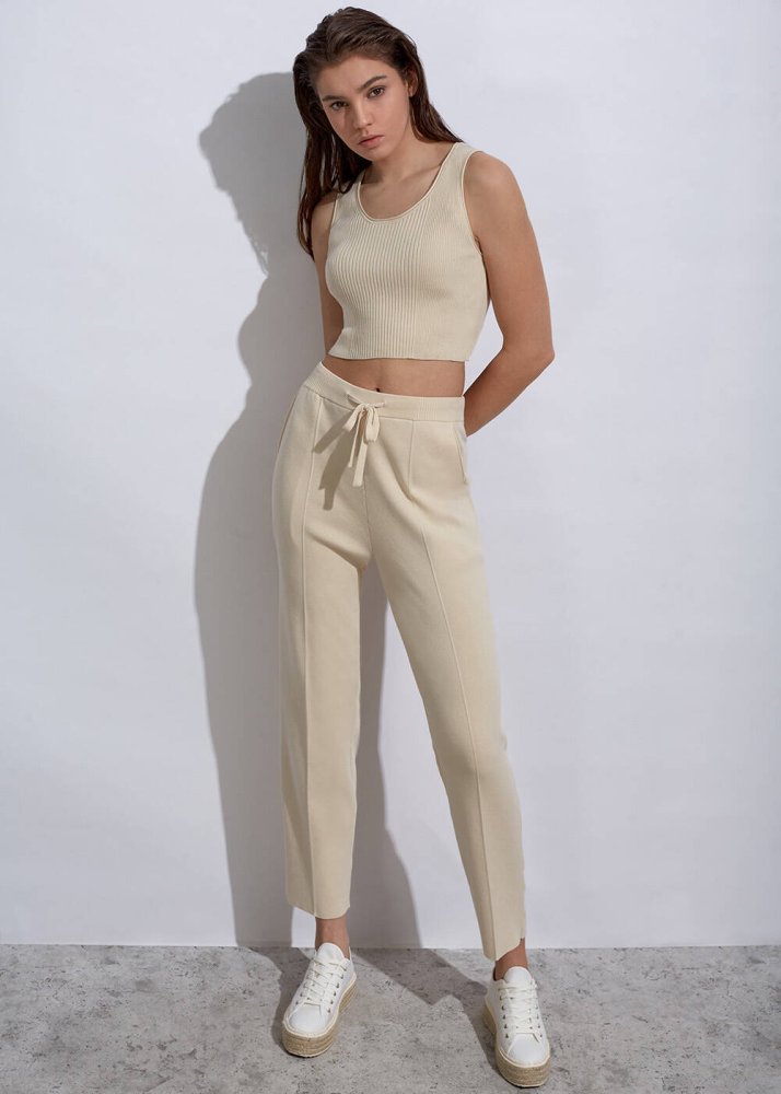 İdeal krem rengi ile hem sportif hem de business kombinlerinize kolayca uym sağlayacak Knitss crop triko üst ile tanışın. Birinci sınıf İtalyan pamuktan üretilen crop triko üst modeli, yuvarlak yaka, fitil örgü ve slim fit kalıbı ile konforlu giyim deneyimi sunar.