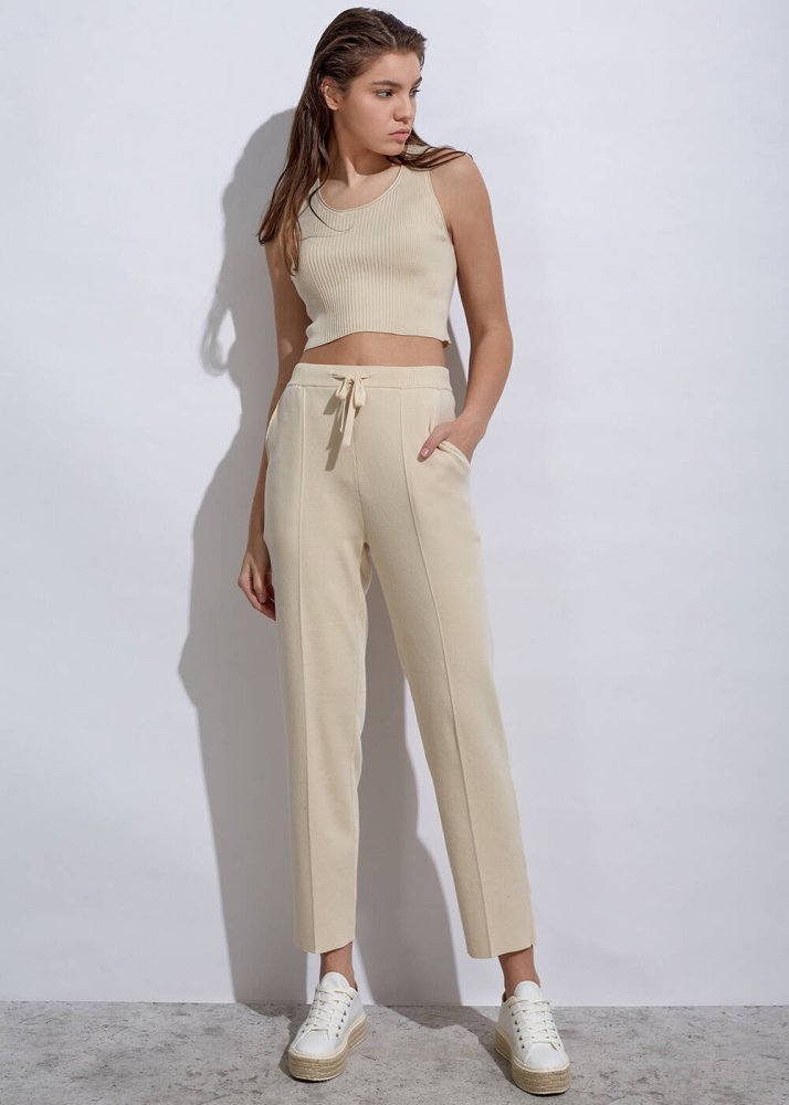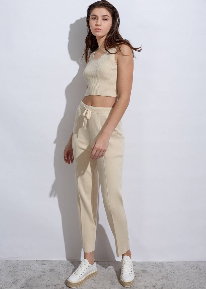 Organik Pamuk Triko Krem Rengi Pantolon