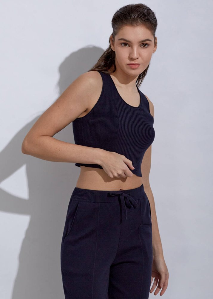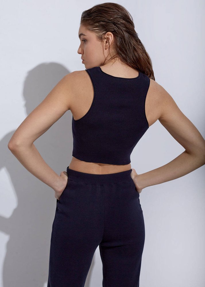 Organik Pamuk Lacivert Crop Triko Üst