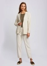 Organik Pamuk Özel Örgü Tasarımlı Bej Triko Ceket