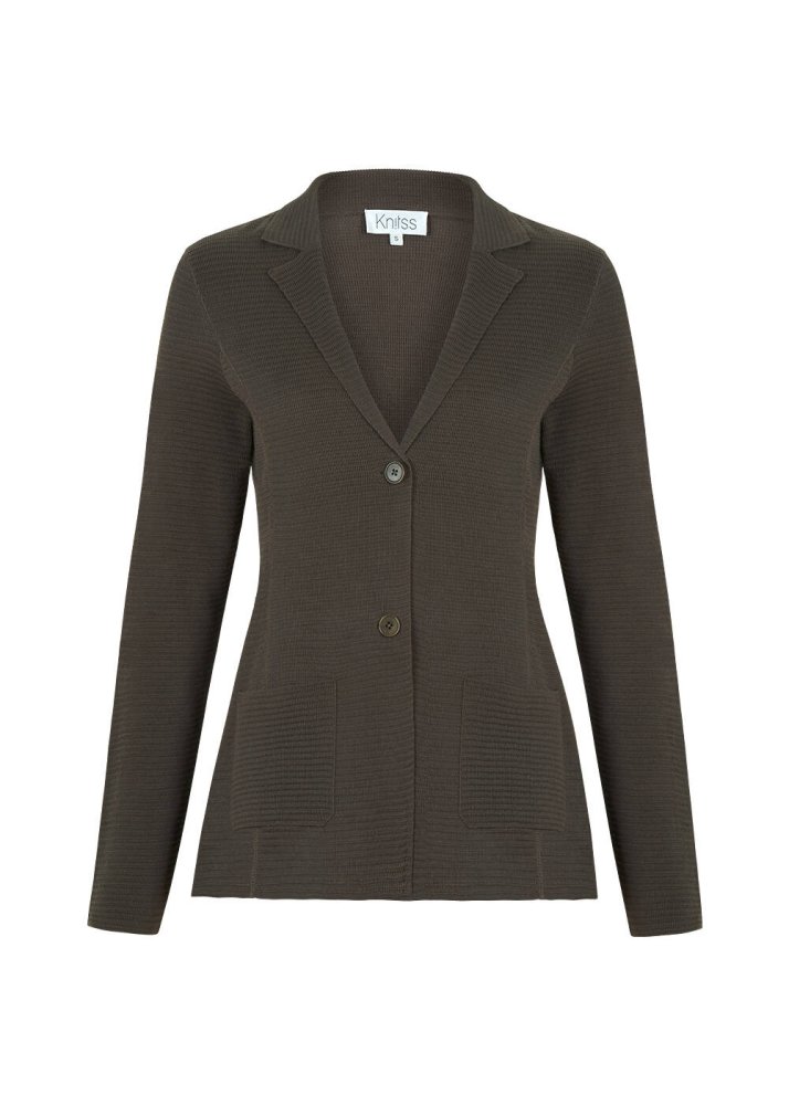 Organik Pamuk Özel Örgü TaSarımlı Haki Triko Ceket